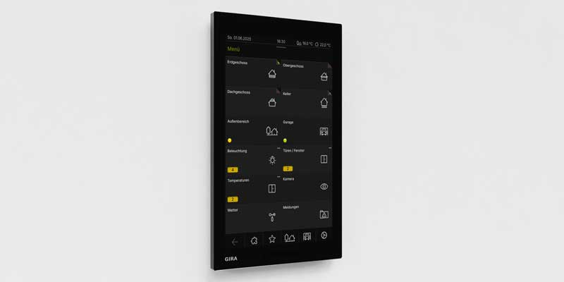 Dank überarbeiteter Software bietet der neue Gira G1 insbesondere in Kombination mit dem Gira HomeServer eine deutlich schnellere Reaktionszeit und hohe Visualisierungsqualität. So lassen sich komplexe Steuerungsaufgaben präzise und individuell abbilden – sowohl im privaten Wohnbau als auch in gewerblichen Objekten.