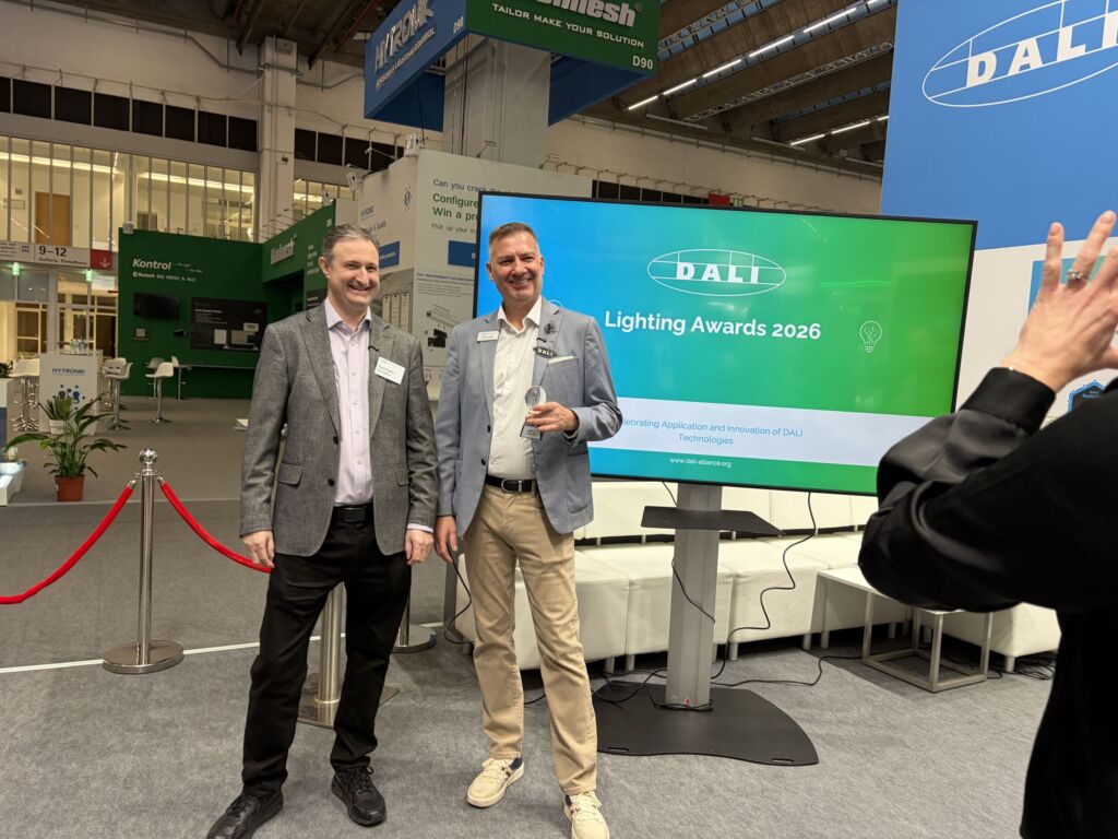Auf der Light + Building wurden am 9. März die DALI Lighting Awards 2026 verliehen. Die DALI Alliance ehrt mit der internationalen Auszeichnung Projekte, die für innovative Anwendung DALI-basierter Beleuchtungssysteme stehen. Im Vergleich zum Vorjahr ist die Zahl der eingereichten Projekte um fast das Dreifache gestiegen. Sie kamen aus Europa, Asien, Amerika, Ozeanien und Afrika. „Diese Entwicklung zeigt, wie rasant sich DALI weltweit verbreitet und wie wichtig offene, interoperable Lichtsteuersysteme für moderne Gebäude und Infrastrukturen geworden sind“, betonte Jeremy Ludyjan, Global Marketing Manager der DALI Alliance, während der Präsentation.