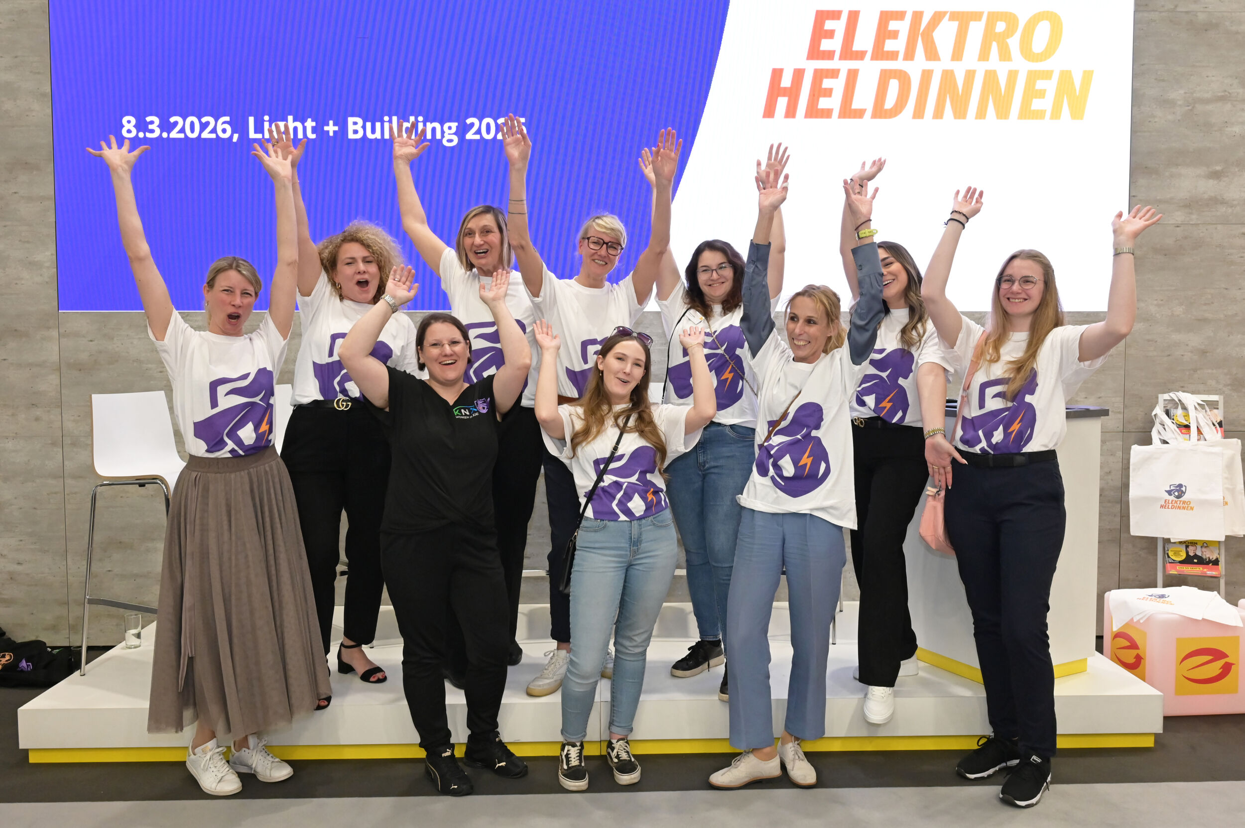 Nach dem Kick-off ist vor der nächsten Veranstaltung. So ist u.a. eine Veranstaltung im Rahmen der ZVEH-Jahrestagung in Warnemünde geplant. Hinter den ElektroHeldinnen stehen aktuell die drei großen Branchenverbände VEG, ZVEH und ZVEI, die Messe Light + Building, die Industrieunternehmen Busch-Jaeger, Hager, SMA und Schneider Electric, der Elektrogroßhändler Uni Elektro, Rexel, der BDEW, die ElektroWirtschaft sowie Women in KNX.