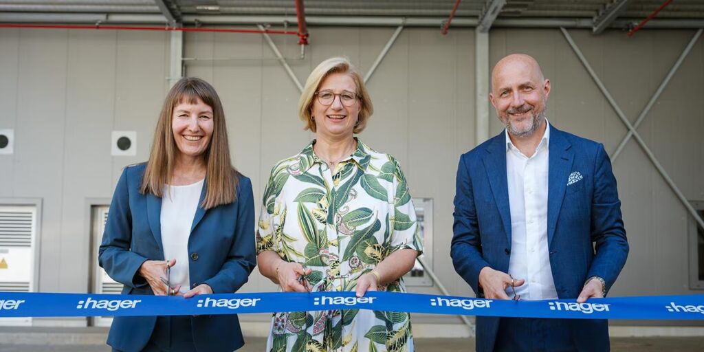 Die Hager Group hat Investitionen mit einem Gesamtvolumen von 18Mio.€ am Hauptsitz in Blieskastel abgeschlossen. Gemeinsam mit Ministerpräsidentin Anke Rehlinger weihte das Unternehmen zwei hochautomatisierte Produktionsanlagen für Stromkreiskleinverteiler und den Technikkomplex ein, ein neues Gebäude für die Instandhaltung von Maschinen sowie einer hocheffizienten Kälteanlage, die erhebliche Strom- und CO2-Einsparungen im Fertigungsprozess ermöglichen soll.