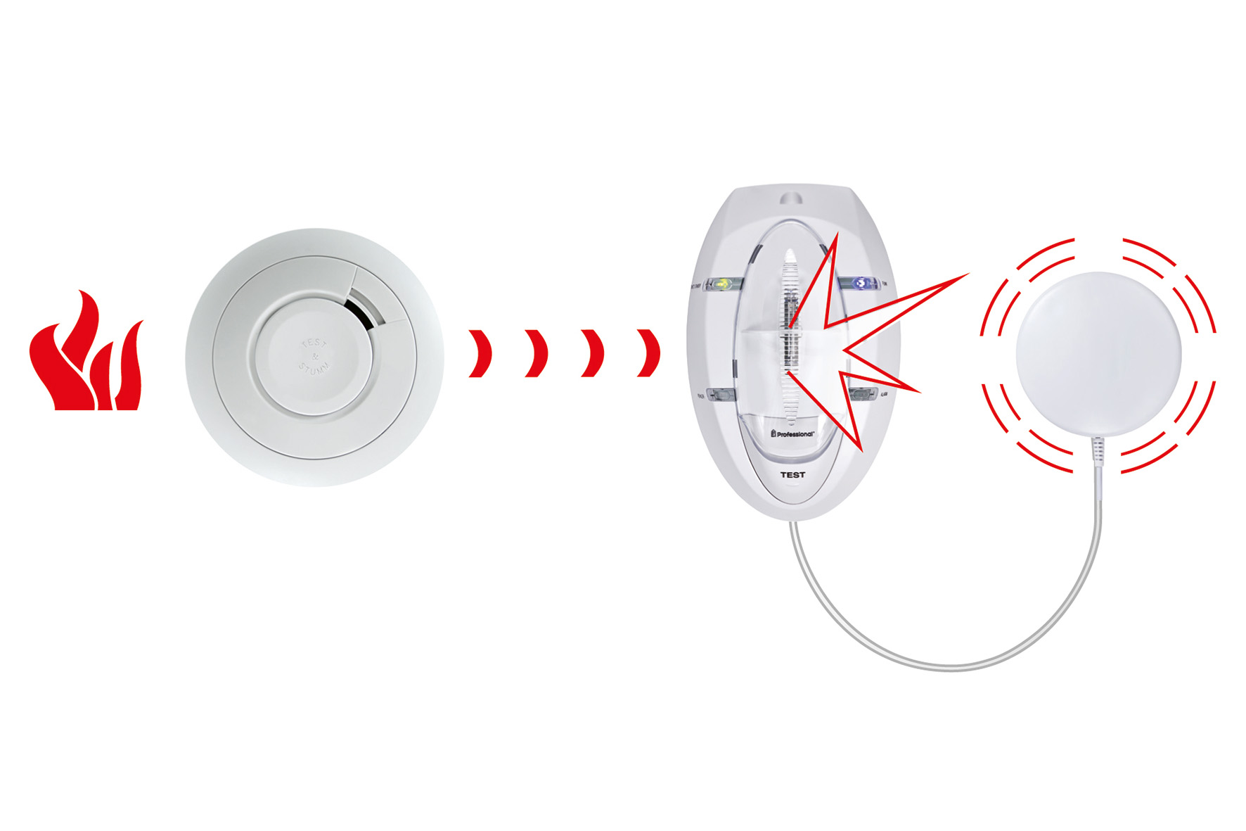 Das von Ei Electronics angebotene Hörgeschädigtenmodul übersetzt den Warnton eines Rauchwarnmelders in alternative Signale und bietet als barrierefreie Rauchwarnmelder-Lösung maximale Sicherheit. – Bild: Ei Electronics KG
