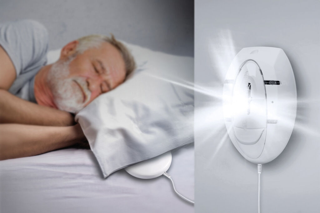 Mit Hilfe eines unter dem Kopfkissen platzierten Vibrationskissens kann das Alarmsignal eines Rauchwarnmelders auch für Personen mit eingeschränktem Hörvermögen wahrnehmbar gemacht werden.Bild: Ei Electronics KG
