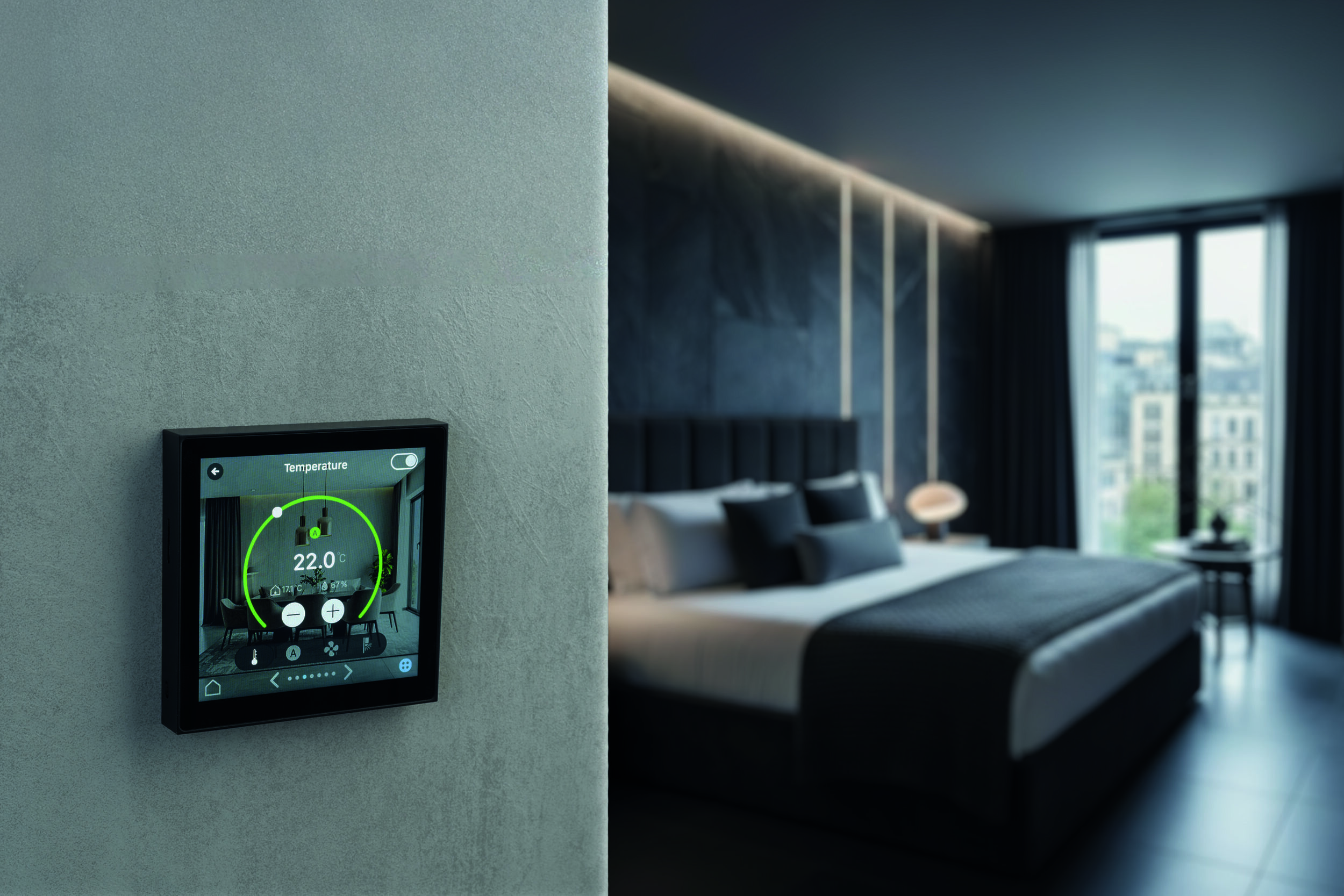 Mit der neuen 540er-Serie präsentiert Theben außerdem eine vielseitige Generation kompakter Mini-Unterputzgeräte zum Dimmen, Schalten sowie zur Zeit- und Lichtsteuerung. Die besonders kleinen Gehäuse eignen sich für einfache und schnelle Retrofit-Projekte – sogar in engen Dosen. Dank integriertem BLE Mesh lassen sich viele Modelle drahtlos vernetzen, per App programmieren und flexibel erweitern. Als Neuheit stellt Theben weiter die neue Geräteserie iONprime vor. Der KNX-Tastsensor iONprime PB KNX und der Raumcontroller iONprime CP 4 KNX ermöglichen eine intuitive Steuerung von Licht, Klima und weiteren Funktionen, wahlweise über Wippen oder ein 4-„-Touchdisplay mit bis zu 48 Funktionen.