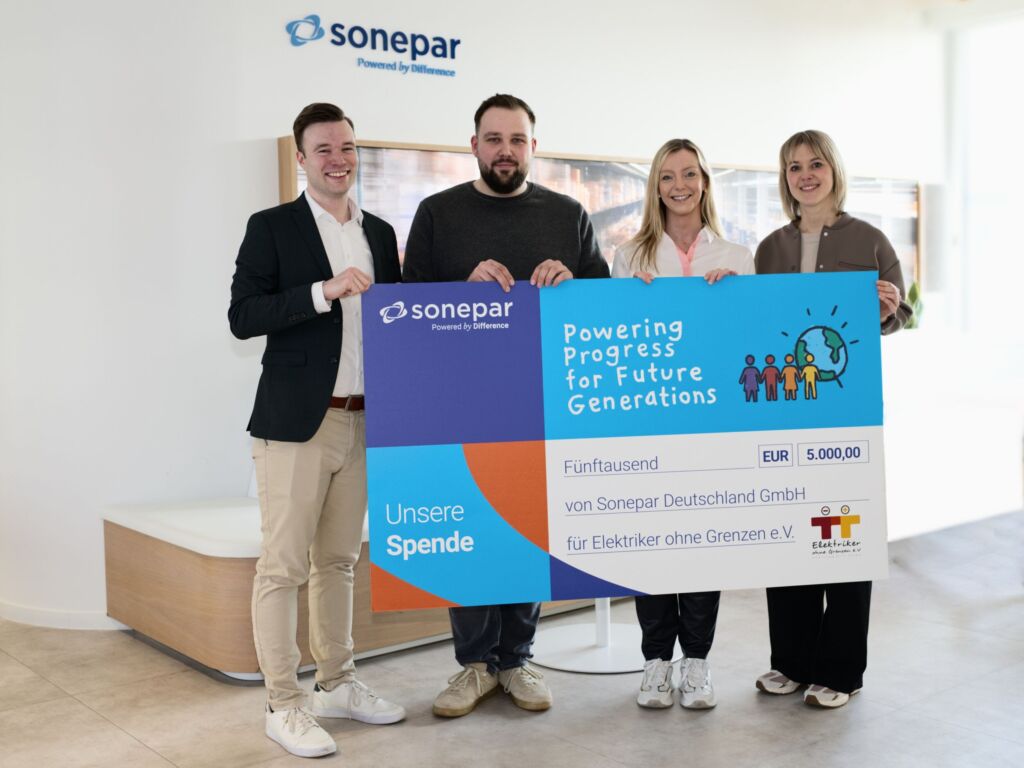 Sonepar Deutschland spendet 5.000 Euro an den Verein Elektriker ohne Grenzen e.V. Die Spende wurde von engagierten Mitarbeitenden initiiert und über einen internationalen Sonepar-Wettbewerb ermöglicht – passend zum Unternehmenspurpose „Wir treiben den Fortschritt für zukünftige Generationen“. Der Verein setzt sich weltweit für sicheren Zugang zu Elektrizität und technische Ausbildung ein; das Geld soll u. a. in sichere Elektroinstallationen, technische Grundversorgung und praxisnahe Schulungen in Regionen ohne ausreichende Infrastruktur fließen. Übergeben wurde der symbolische Scheck in Düsseldorf von Alexandra Walleck an Vorstandsmitglied und Projektleiter Fabian Hoheisel. Zudem wird darauf hingewiesen, dass die begleitende Audioaufnahme KI-generiert ist und vom Tedo Verlag stammt.
