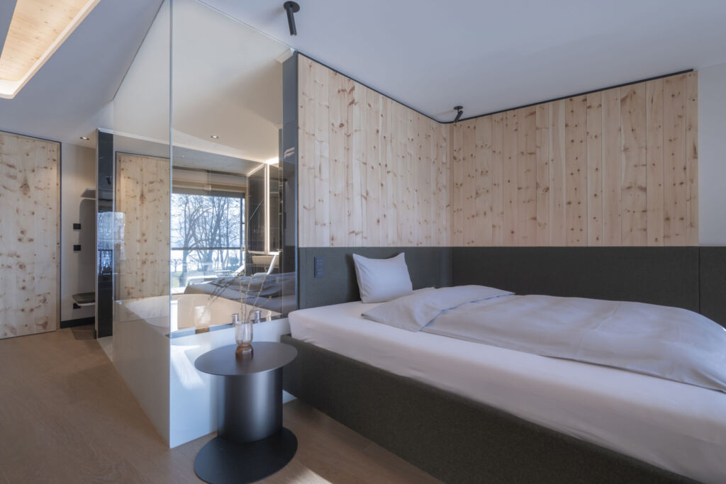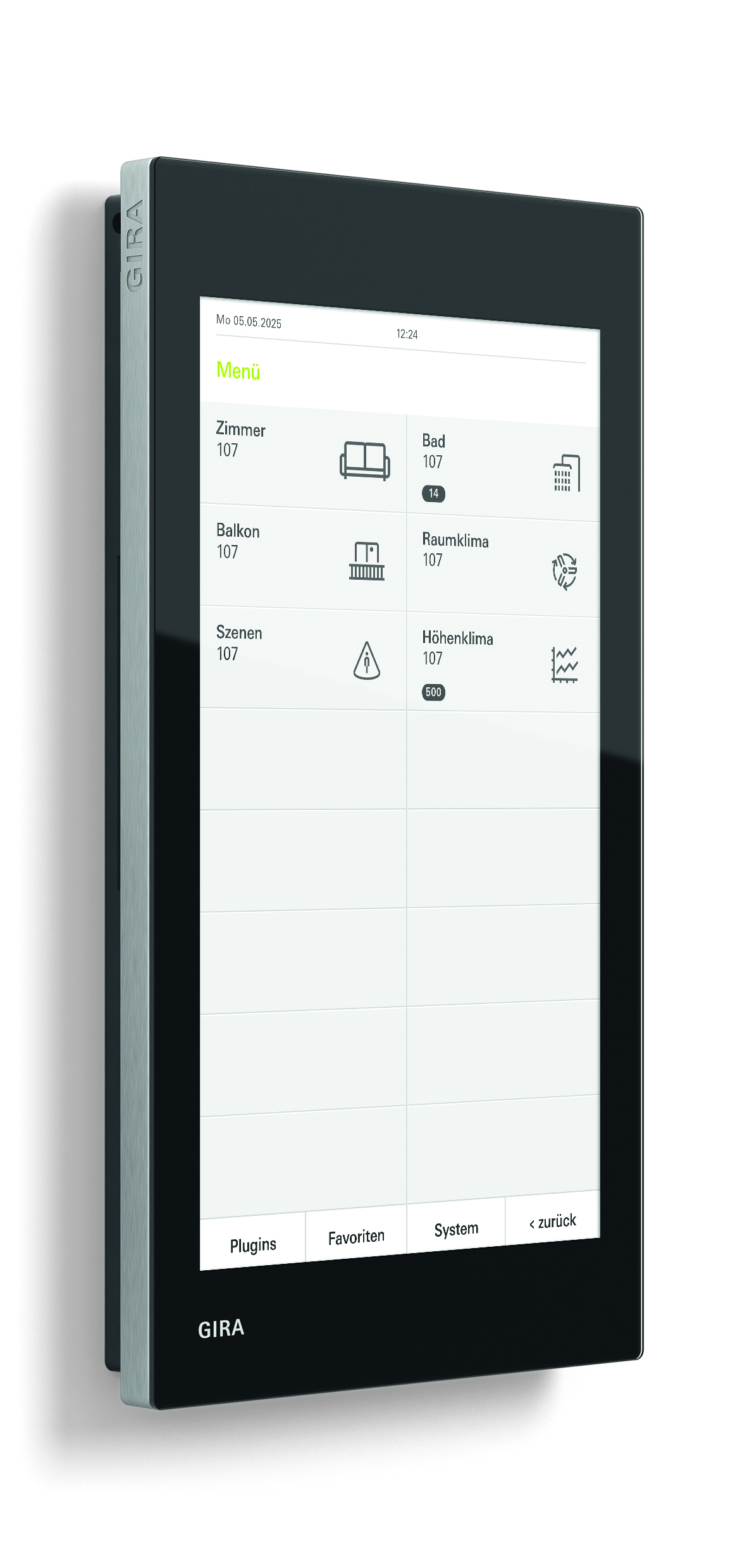 Ein Alleinstellungsmerkmal des Buff Medical Resorts ist die Simulation von Höhenklima in den Gästezimmern – ein therapeutischer Ansatz und für die Behandlung notwendige Maßnahme zur Stärkung des Immunsystems. Dazu misst ein unauffällig in den Gästezimmern integrierter Sensor kontinuierlich die Sauerstoffsättigung der Luft. Diese wird über den HomeServer geregelt. Die Server dokumentieren Daten der Einstellungen des Höhenklimas. Von den Ärzten definierte Sollwerte werden per QuadClient direkt in das KNX-System übertragen. Die Gäste können in ihren Zimmern über das Multitouch Display Gira G1 u.a. die Beleuchtung, die Vorhänge, das Insektenschutzrollo des Balkons und die Raumtemperatur bedienen sowie den verordneten und eingestellten Wert des Höhenklimas ablesen. Die smarten Gira Tastsensoren in den Räumen sind benutzerfreundlich mit Symbolen gelasert. Das Designkonzept setzt auf hochwertige, langlebige Materialien: etwa das puristische Schalterprogramm Gira E2 in Schwarz matt.
