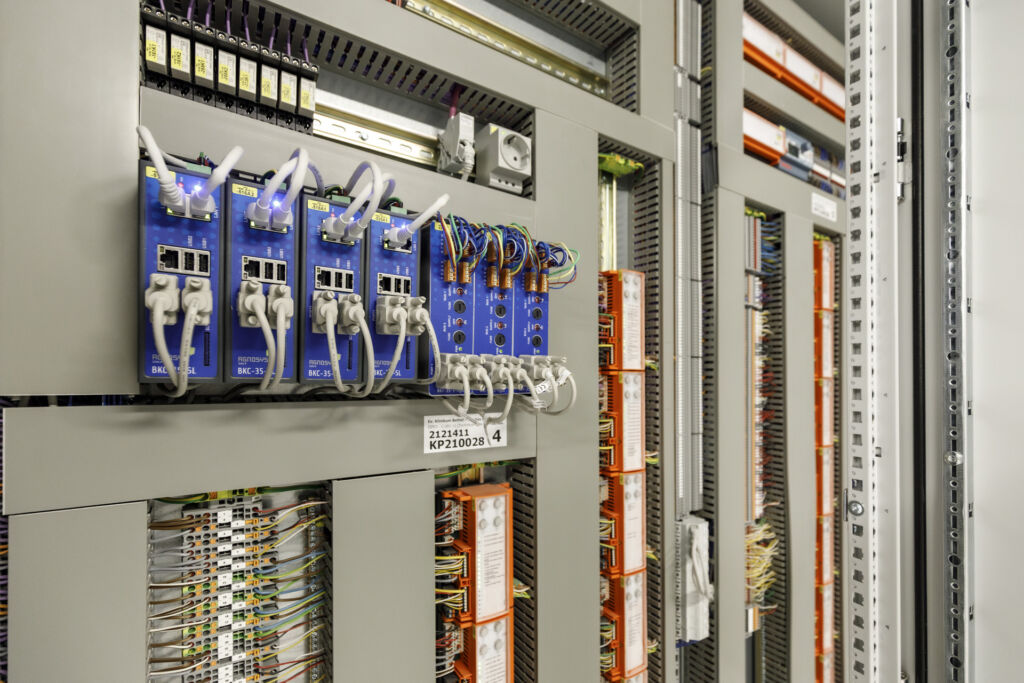 Die Erfüllung der vorgeschriebenen Sicherheitsanforderungen in Klinikbetrieben ist entscheidend, wenn es darum geht, Gesundheit und Wohlbefinden von Patienten, Mitarbeitern und Besuchern zu gewährleisten und einen reibungslosen Ablauf sicherzustellen. Jürgen Käller, zuständiger Architekt und Bauplaner am EvKB, betont: „Bei einem Klinik-Neubau ist eine exakte Planung über die gesamte Projektlaufzeit ein Muss, denn die Projektkomplexität und Sicherheitsanforderungen eines Klinikbetriebs sind hoch.“ Um diesen Ansprüchen gerecht zu werden, ist die Installation einer durchdachten Gebäudeautomation zur Regelung und Zusammenführung des technischen Kliniksystems unverzichtbar. Die Kinderklinik verfügt nun über eine technische Lösung, die von Kieback&Peter speziell für dieses Bauprojekt entwickelt und installiert wurde: Insgesamt drei Technikzentralen sorgen dafür, dass alle technischen und sicherheitsrelevanten Anforderungen der medizinischen Einrichtung erfüllt werden. Zwei dieser Zentralen sind für die Lüftung zuständig, während die dritte die Wärmeversorgung übernimmt. In den Technikzentralen befinden sich fünf von insgesamt sechs Automationsschwerpunkten (ASP). Der sechste ASP ist für die Entrauchung der Tiefgarage vorgesehen. In den ASP wurden etwa 30 Schaltschrankfelder installiert, in denen neun Automationsstationen vom Typ DDC4000e als Hutschienencontroller zum Einsatz kommen. Insgesamt wurden 1.450 physikalische und 1.650 kommunikative Datenpunkte konfiguriert, definiert und systemintegriert. Dafür wurden 150 Ein- und Ausgabemodule eingerichtet, die als Schnittstelle zwischen der Feld- und Automationsebene dienen. Sie erfassen die analogen und binären Werte und steuern die zugehörigen Komponenten an.