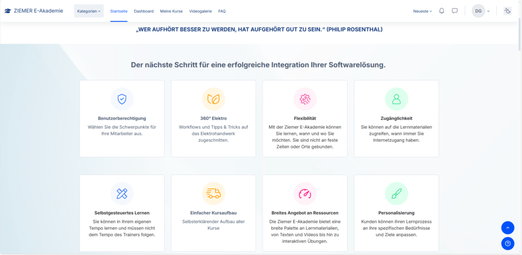 Eine E-Akademie wie die von Ziemer ist mehr als eine reine Schulungsplattform. Mit den richtigen Features wird sie ein strategisches Werkzeug für Unternehmen. Sie verbindet modernes E-Learning mit konkretem Praxisnutzen, spart Zeit und Geld und unterstützt dabei, Mitarbeitende fit und offen für die digitale Arbeitswelt zu machen. Und damit auch passende Lösungen zu vermitteln.