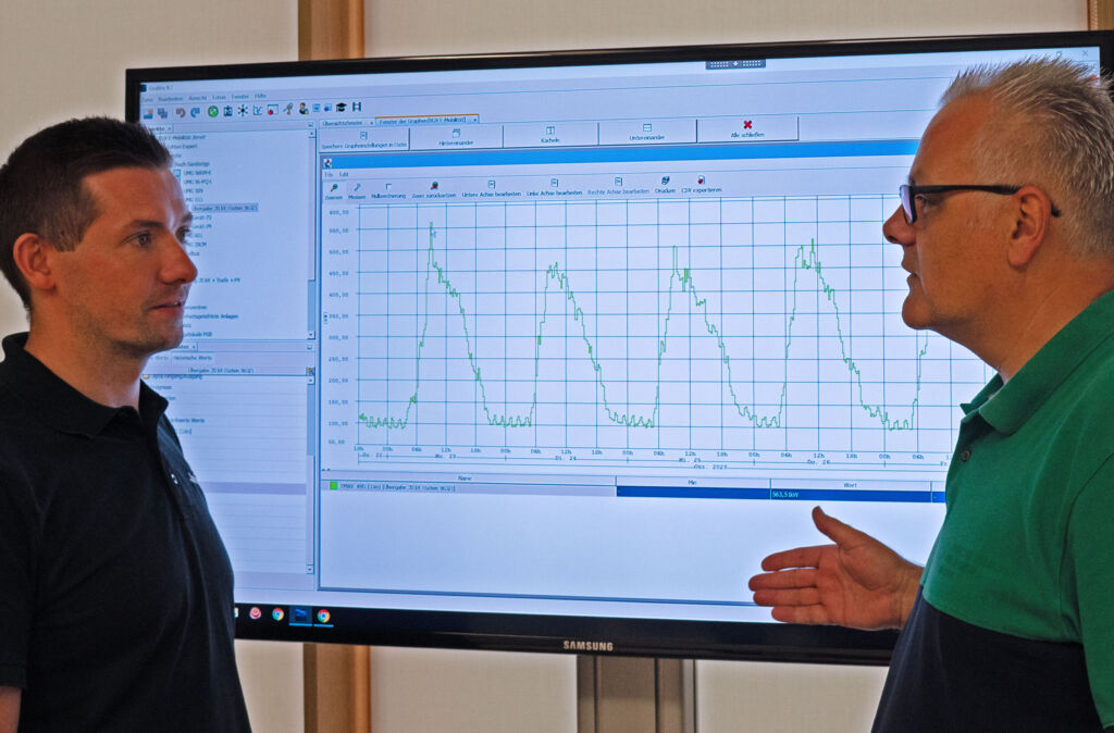 Mike Stempniewski (links) und Dierk Wolfinger begutachten einen Lastgang. Bild: ©Martin Witzsch